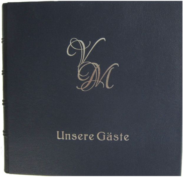 In ein klassisches, noch unbeschriebenes, Hochzeits-Gästebuch tragen sich die Gäste während der Hochzeitsfeier mit Namen und Glückwünschen ein. Es kann später als Hausgästebuch oder als Familienbuch weitergeführt und somit zur Chronik einer Familie werden.